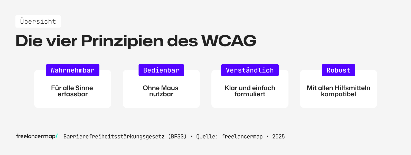 Das Gesetz orientiert sich an den WCAG 2.1 Richtlinien (Web Content Accessibility Guidelines) auf Level AA, einem international anerkannten Standard für barrierefreie digitale Inhalte. Die WCAG basieren auf vier Prinzipien: