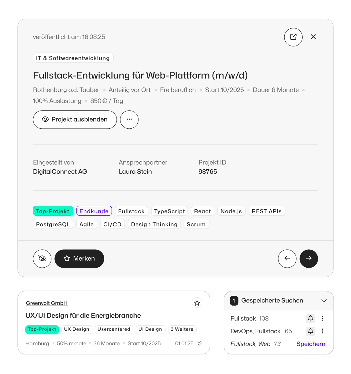 Als Projektanbieter verwalten Sie Ihre Ausschreibungen jetzt noch einfacher – für mehr Transparenz, weniger Aufwand und eine klare Kommunikation mit Freelancern.